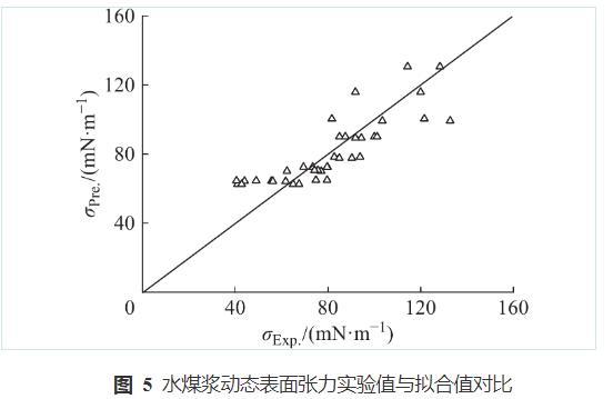 圖5水煤漿動態(tài)表面張力實驗值與擬合值對比