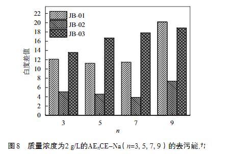圖8質(zhì)量濃度為2 g/L的AEnCE-Na(n=3,5,7,9)的去污能力