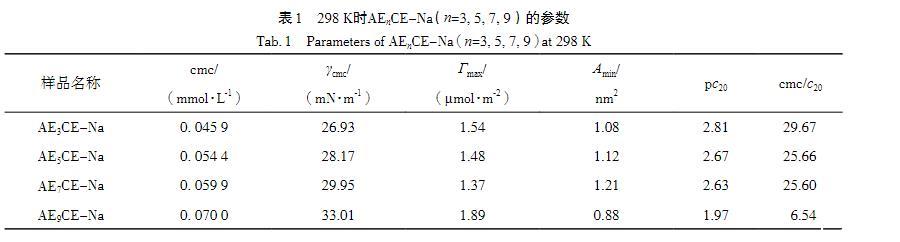 表1 298 K時AEnCE-Na(n=3,5,7,9)的參數(shù)