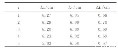 4)記錄水膜剛好被拉破時標尺的讀數(shù)L?,計算得到彈簧的伸長量ΔL,實驗結(jié)果如表1所示。