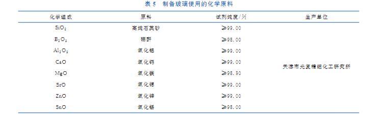 表5 制備玻璃使用的化學(xué)原料