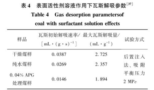 3.1添加表面活性劑抑制瓦斯解吸效果