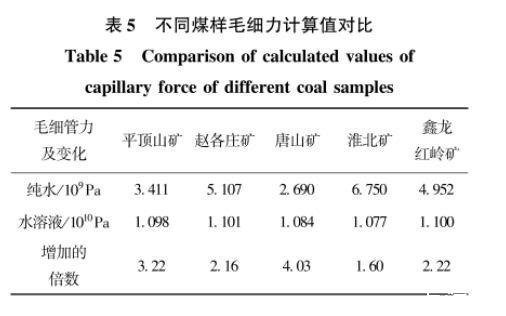 表5不同煤樣毛細(xì)力計(jì)算值對(duì)比